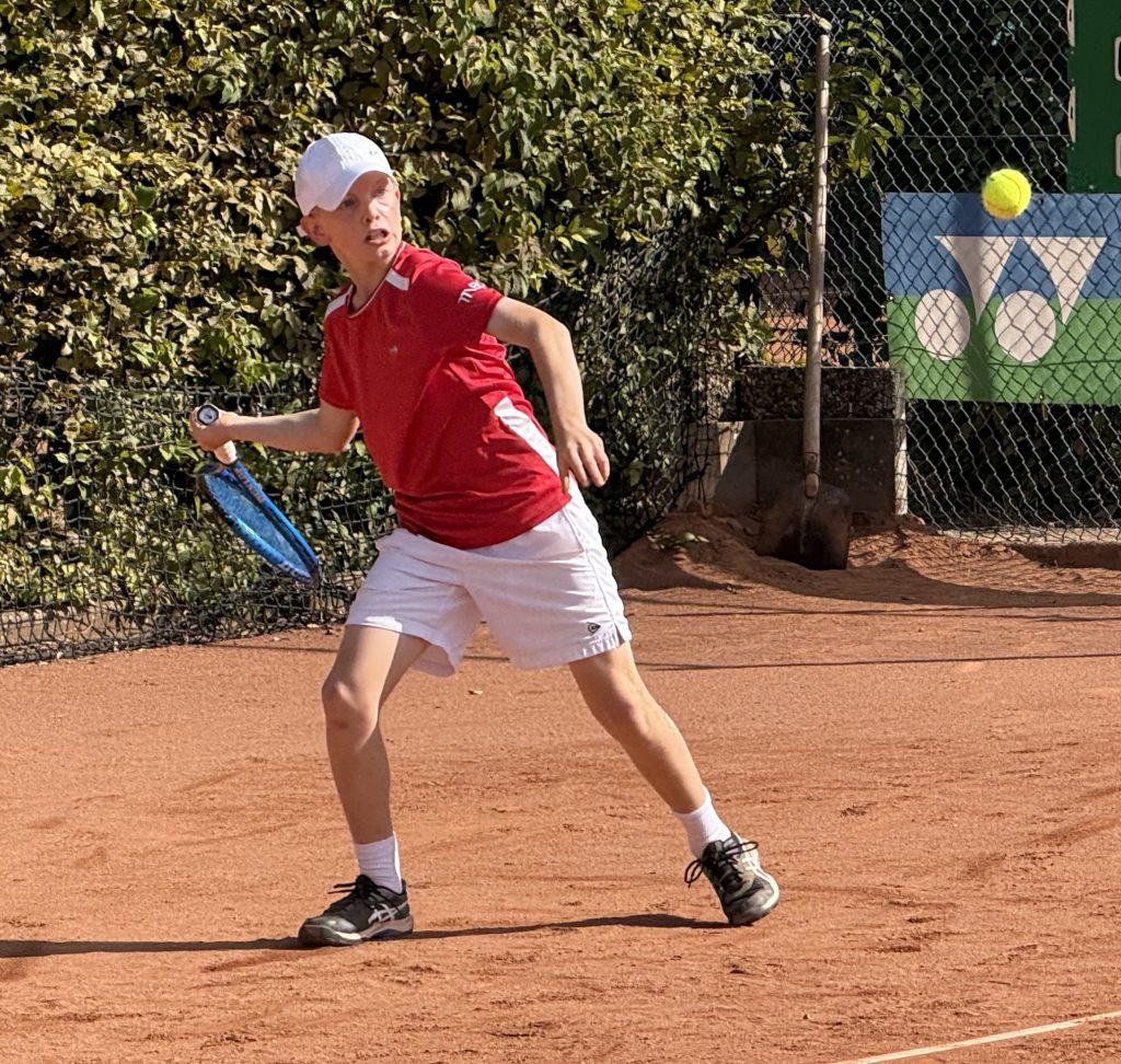 Oskar Zimmermann schlägt in der U12-Nationalmannschaft für Deutschland auf.